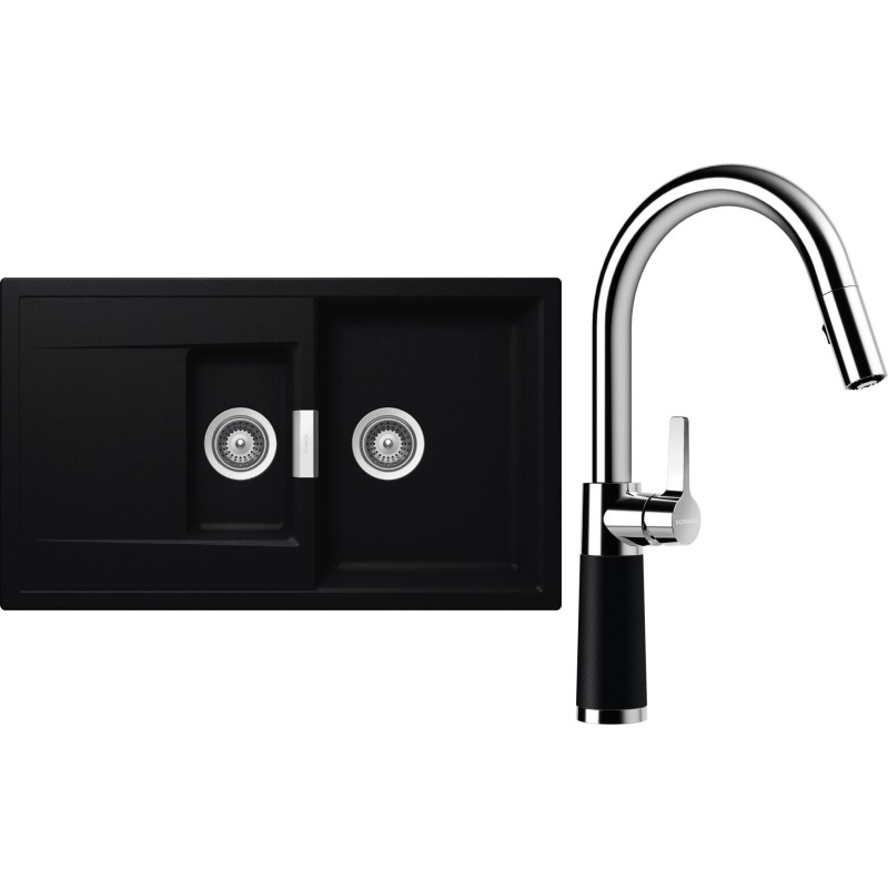 Cenově zvýhodněný set dřezu a baterie Schock S7-7 - obsahuje granitový dřez s vaničkou a odkapem Mono D-150 Puro a baterii se sprchou SC-520.120 Puro.